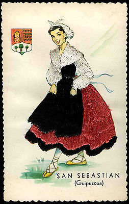 Vintage 1950's Postcard Embroidered Silk Spanish Lady Dancer San Sebastian