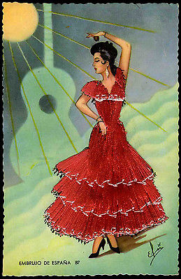 Title (ebay affiliate link): Vintage 1950's Postcard Embroidered Silk Spanish Lady Dancer in Red Dress
