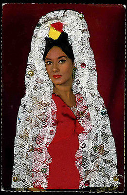 Vintage 1950's Postcard Embroidered Silk Spanish Bride Wedding Dress ? Marriage