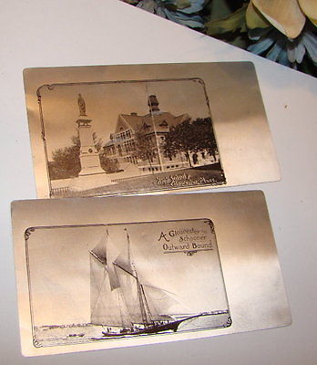 VINTAGE!! LOT OF 2 OLD NOVELTY ALUMINUM POSTCARD GLOUCESTER MASS. HIGH SCHOOL