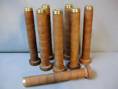 8 WOODEN, WOOD TEXTILE MILL SPOOLS, BOBBINS WITH BRASS END