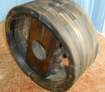 Title (ebay affiliate link): ANTIQUE WOOD FLAT BELT SLIT PULLEY 14" DIA, PRIMITIVE WOODEN PULLEY, HARDWOOD