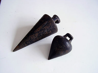 Title (ebay affiliate link): 2 VINTAGE METAL PLUMB BOB'S, UNIQUE SHAPES, NO RESERVE