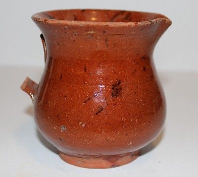 Title (ebay affiliate link): 19th C. Redware 4" Pitcher / Creamer w/ Manganese Decoration c.1840 Philadelphia