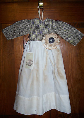 Title (ebay affiliate link): GRUNGY~PRIMITIVE WALL~CUPBOARD~DOLL DRESS stained prairie style dotted curtain