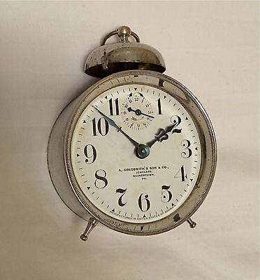 Title (ebay affiliate link): Antique Alarm Clock Unknown Make A. Goldsmith's Son, Quakertown PA Keeps Time