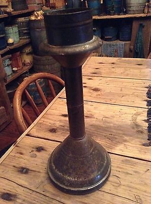 Antique tin candle holder brass rings 13 1/2 tall wide base Early primitive AAFA