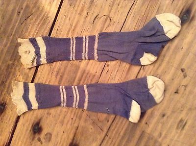 Antique childs blue white striped socks stockings primitive AAFA toddler