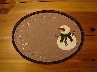PRIMITIVE WOOL FELT PENNY RUG CANDLE MAT SNOWMAN AND SNOWFLAKES