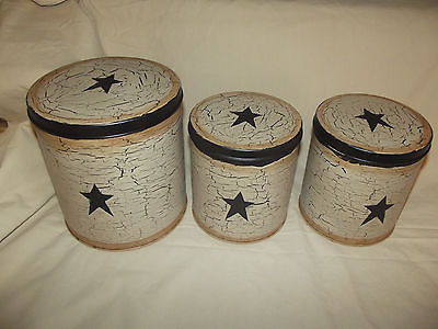 Title (ebay affiliate link): Primitive Crackle Tins Canisters Set of 3 ~ Black Stars ~ Country Decor