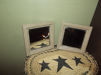 Primitive Crackle Wood Framed Mirrors Set of 2 ~ Country Decor