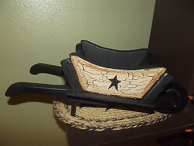 Title (ebay affiliate link): Primitive Crackle Wood Wheelbarrow Shelf Sitter~ Black Stars ~ Country Decor