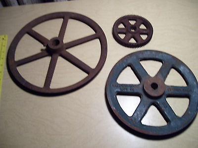 Lot of 3 Cast Iron Flywheel / Pulley's Wheel Industrial Machine Age Steampunk