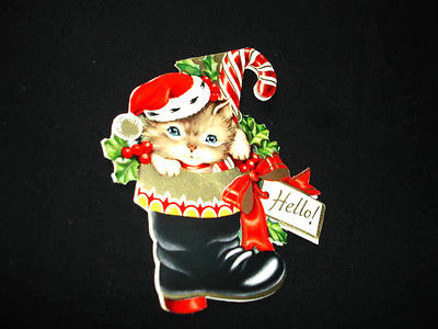 Title (ebay affiliate link): PP5 Estate Vintage Die Cut Christmas Greeting Card Ornament Kitten 1943-44