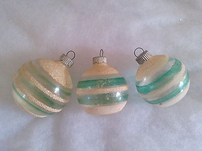 3 VTG UNSILVERED STRIPEd SHINY BRITE ORNAMENTS green stripes mica