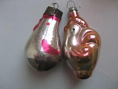 Vintage Russian Christmas silver Glass Ornaments "2 Roosters "