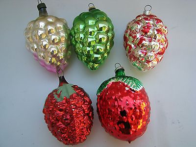 Lot Vintage BERRY Strawberry Grape Handblown Mercury Glass Christmas Ornaments