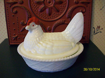 WHITE MILK GLASS ROOSTER /WITH RED COMB CANDY DISH