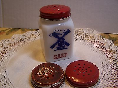 Vintage Milk Glass Salt Shaker Range Windmill Red Lid w/extra Lids