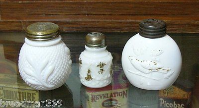 3 MILK GLASS SALT & PEPPER SHAKERS