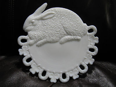 Westmoreland Milk Glass Rabbit/Bunny Plate Horseshoe Clover Design