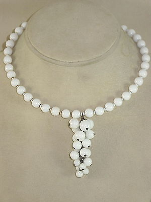 Vintage Miriam Haskell Milk Glass Beaded Choker Necklace + Japan Glass Earrings