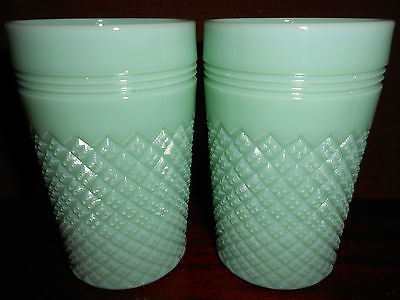 pair of Jadeite green milk glass diamond pattern tumbler cups goblet jadite jade