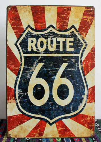 Title (ebay affiliate link): Route 66 Vintage Metal Tin Signs Rustic Poster Home Pub Bar Wall Decor NO104