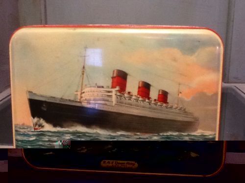 Title (ebay affiliate link): Advertising Tin Confectionery LTD. Bensons Candy, Litho Cunard RMS Queen Mary