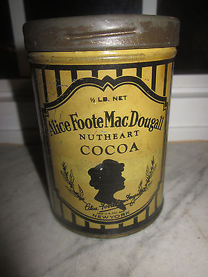 Title (ebay affiliate link): VINTAGE 1920s CAN LITHOGRAPH NUTHEART COCOA TIN ALICE FOOTE MACDOUGALL BAKING