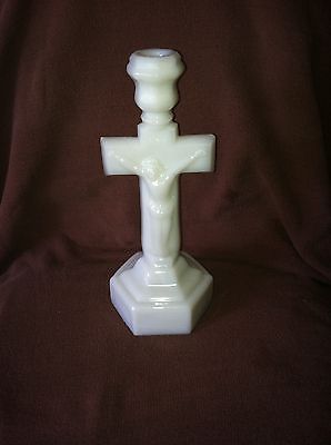 MILKGLASS JESUS ON CROSS RELIGIOUS CANDLESTICK HOLDER