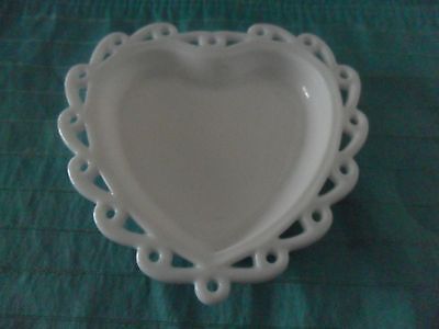 White Milk Glass Heart Shaped Dish w/ Lacy Edge HTF