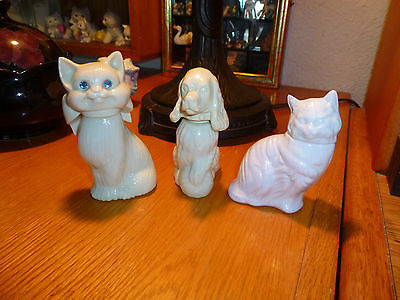 3 Vintage Milk Glass Avon Perfume Bottles, 2 Cats 1 Dog