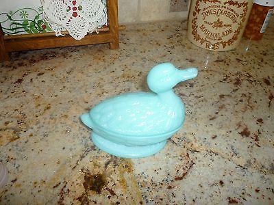 Vintage Bllue Milk Glass Duck Covered Dish Great Condition Looking for a Home