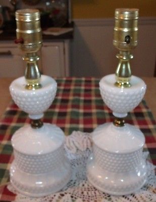 Pair of Vintage White Milk Glass Hobnail Lamps