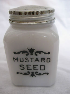 VINTAGE MUSTARD SEED MILK GLASS SPICE JAR SHAKER