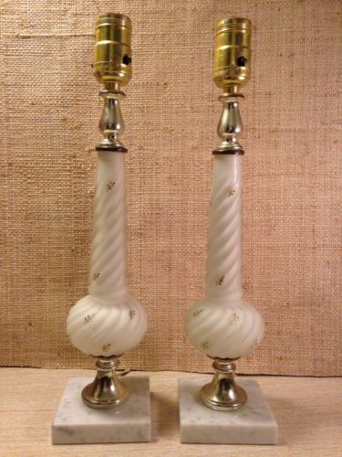 Title (ebay affiliate link): Pair of 2 Vintage Frosted Glass Milk Glass Table Bedside Lamps, Simple, Elegant