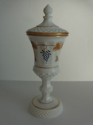 Title (ebay affiliate link): Tall Vintage Grape Milk Glass Paneled Pokal Covered Footed Vase Gold Gilt 12.5"