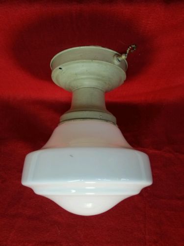 Title (ebay affiliate link): Vintage School House Milk Glass Light Fixture Globe 9 1/2" Diameter 4" Brass