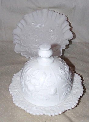 Title (ebay affiliate link): Imperial Glass Milk Glass Rose Double Crimped Bowl & Covered Butter Dish UNUSED