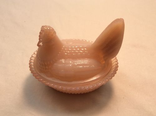 Title (ebay affiliate link): Vintage Pink Glass Nesting Hen Candy Trinket Dish Milk Glass