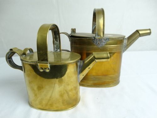 Title (ebay affiliate link): 2 Fine Antique Brass Lidded Watering Cans Continental Europe Early 20thC
