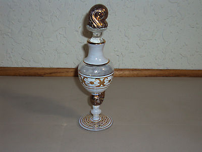 Vtg Art Glass Signed Clive ? Gold & White Crystal 7" Perfume Bottle & Stopper