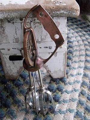 Primitive Vintage Egg Beater Hand Mixer With Copper Handle & Steel Blades