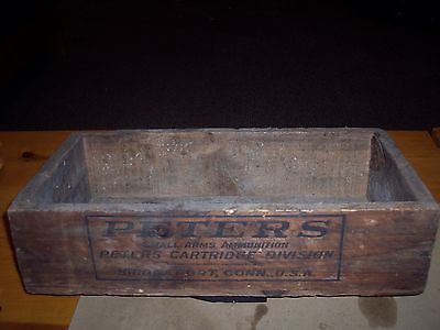 VINTAGE PETERS SMALL ARMS AMMO WOOD CRATE 19LX10WX4.75D