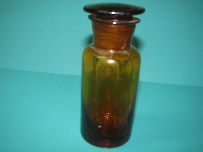 Amber/brown glass medical chemical apothecary bottle with glass stopper, small
