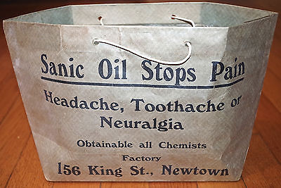 Antique chemist pharmacy shopping bag "Sanic Oil Stops Pain" Austrailia original