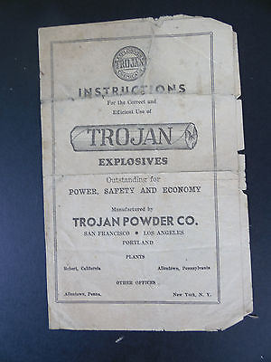ca 1900 Trojan Powder Company Instructions on Use of Explosives Mining Dynamite