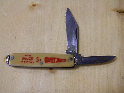 Title (ebay affiliate link): Vintage Coca Cola 2 Blade Knife "Drink CC in Bottles 5 Cents" - Yellow Handle