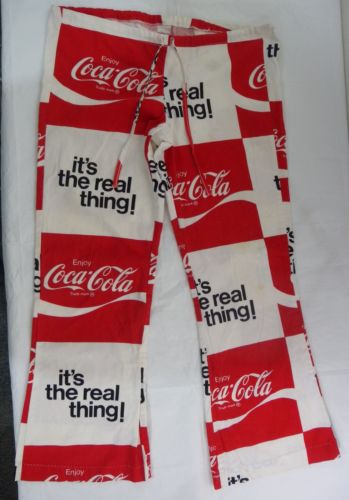 Title (ebay affiliate link): 38" Coca-Cola 70's Bell Bottom Pants Drawstring VTG Retro Coke Beach Print 1970
